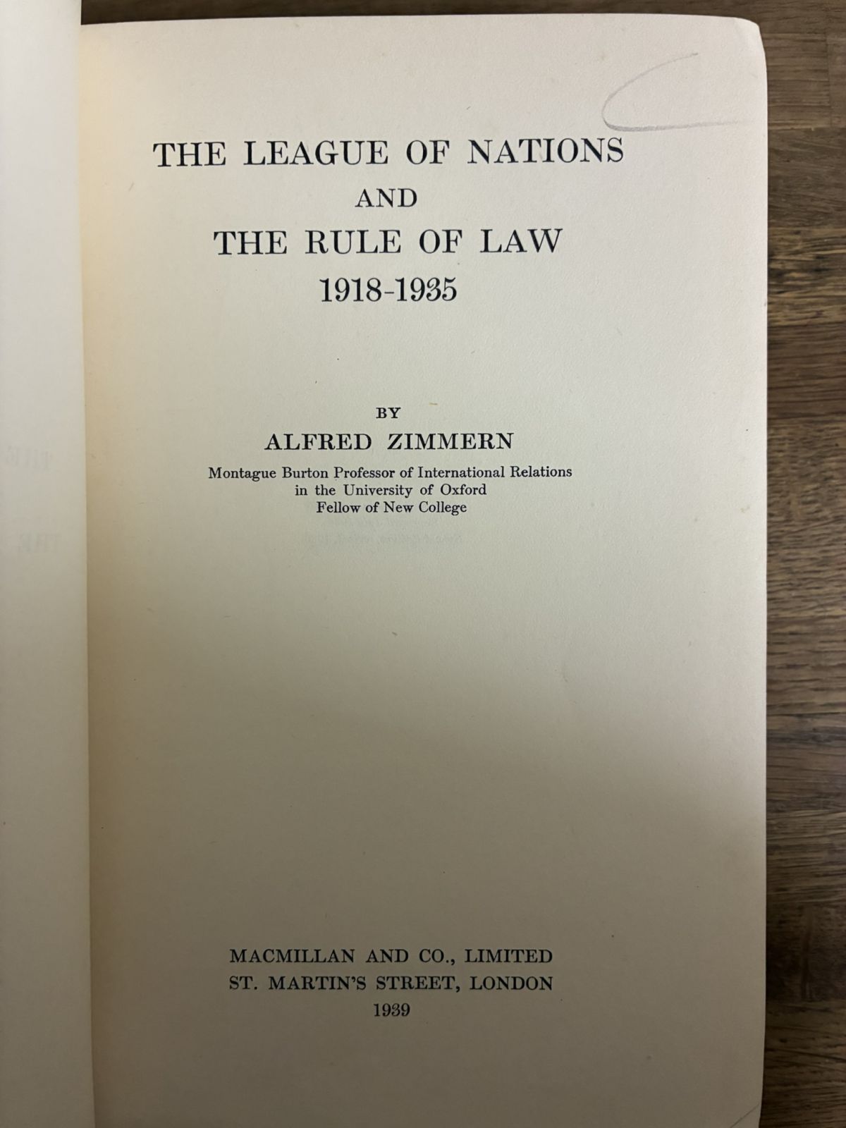 アルフレッド・1939 ジンメルン『国際連盟と法の支配 1918-1935』Alfred Zimmern, The League of Nations and the Rule of Law 19181935 收藏
