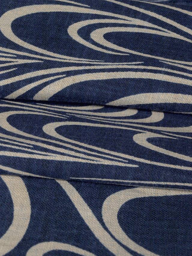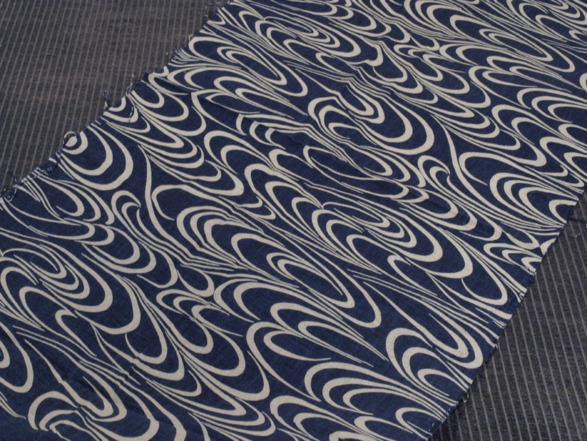 きなり色の地に、青藍(せいらん)色で流水の文様が染められている、綿のはぎれです。 シンプルでミニマルな伝統文様のモチーフが使いやすそうです。ほっこりとしたやわらかな手ざわりのとこどころに紬調の細めの節がところどころにある、むら織地です。 ユーズド品としてはいますが、残布と思われ、使用感はありません。しみやよごれ、褪色、穴などのダメージもなく、とてもきれいな状態です。生地の力もあります。※風楽の出品内で同じ柄のものを複数出点している場合もあります。 |