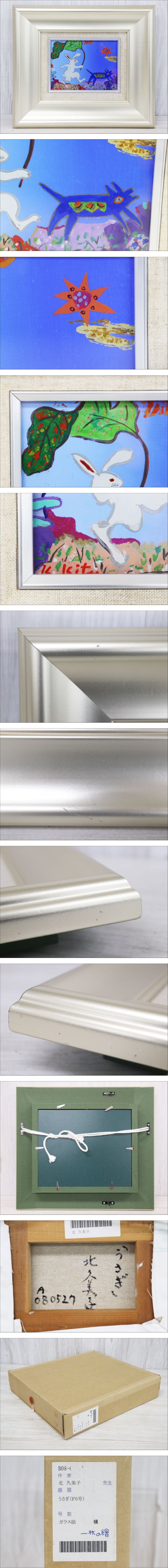 【行董】北久美子 ガラス絵 「うさぎ」 F0号 サイン有 額装入り 額サイズ36×32cm アート コレクション AT291ABC48 收藏