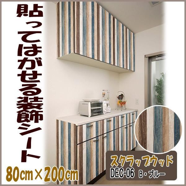 DECO SHEET 貼ってはがせる装飾シート 80cm×200cm スクラップウッド柄 DEC-06 B・ブルー 收藏