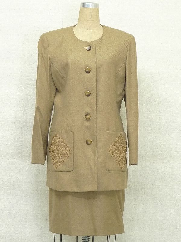 60SR90★TORRENTE/トラント ツーピース スーツ セットアップ ノーカラージャケット スカート 收藏