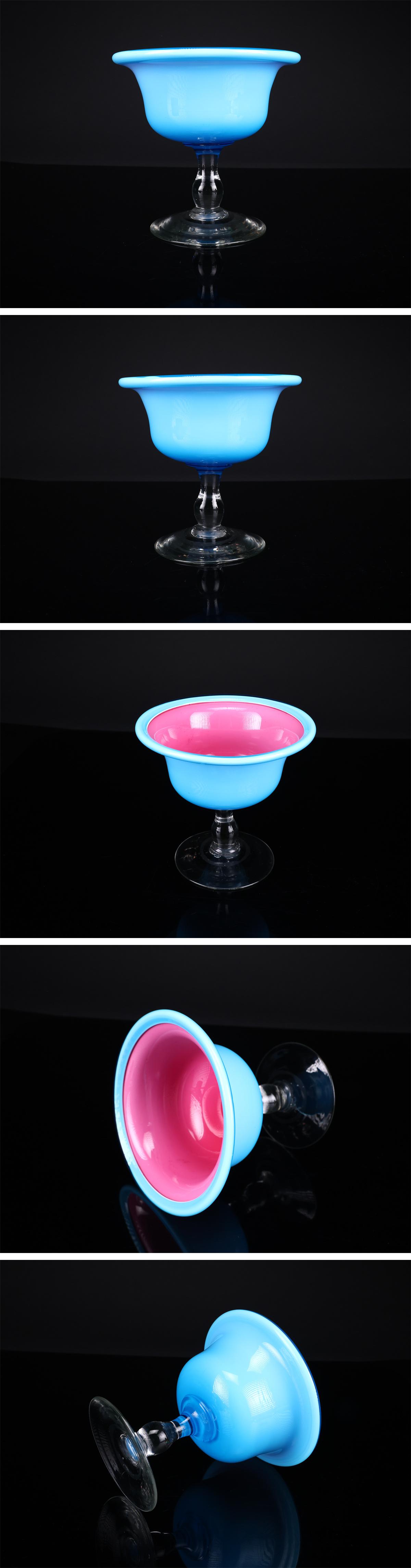 【吉】PD523 明治大正期 【ウランガラス】 外青内赤 氷コップ 大型 高13.5㎝ 径14.5㎝/美品! 收藏