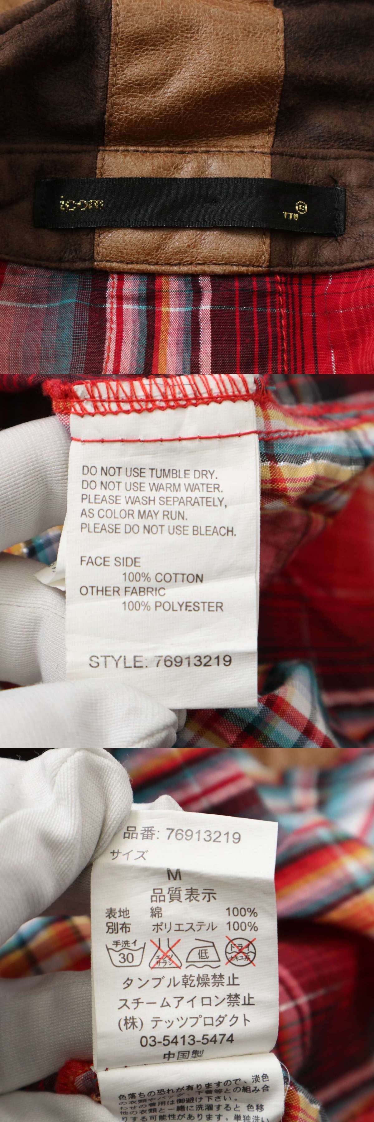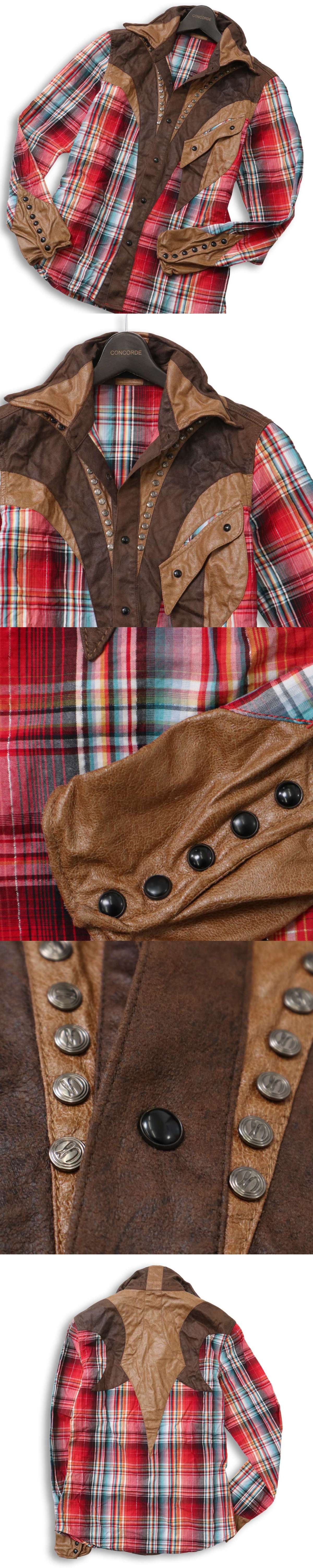 【00s★Y2K VINTAGE】T.T.U テッツ 秋冬 フェイク レザー★ 襟袖口ワイヤー 長袖 ウエスタン チェック シャツ Sz.M メンズ 收藏