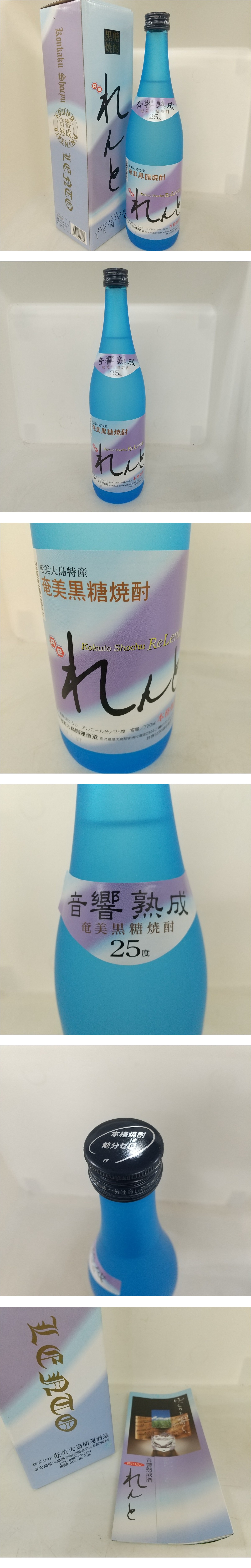 | ※必ず最後までお読みください。 Please be sure to read to the end. 一定要到最后※ | 商品概要 | 数あるオークションの中からこちらの商品をご覧頂きまして誠にありがとうございます! ※商品説明と注意事項を必ず全てお読み頂いた後にご入札下さい※ (東京都公安委員会許可 第307781505147号 古物商) 引き続き 安心できる気持ちの良いお取引を心掛けてまいりますのでどうぞ 宜しくお願い致します! 色んなジャンルの商品を多数出品しておりますので是非こちらもご覧ください!!⇒こちらをクリック ◎未開栓/古酒◎奄美黒糖焼酎 れんと 音響熟成 720ml 25度 奄美大島特産 箱 即発送 ※最下部にも写真掲載中なので必ずご覧下さい。 「れんと」は音楽記号で、ゆるやかにという意味です。れんとは、タンクの中で、約3ヶ月間クラシック音楽を聴きながら熟成していきます。音響熟成は香りと味をよりまろやかに、そしてすっきりした喉ごしにする効果があるといわれてます。 そして、奄美大島の最高峰であり古来から自然を守り続けてきた「湯湾岳」の伏流水を仕込水、割水に使用し、やさしい飲み口と豊かな香りから女性に人気の黒糖焼酎です。 【種 別】焼酎 【名 称】奄美黒糖焼酎 れんと 音響熟成 【原材料】黒糖・米麹 【容 量】720ml 【度 数】25度 【原産国】日本 【状 態】未開栓品です。必ず写真をご確認ください。 【詳細・備考】当方譲り受けたお品になります。 自宅保管で経年の保存による、量減りや風味の変化等は保証しかねますのでご了承ください。 又、当方でしっかり梱包しますが、未開栓品でも稀に発送後に液漏れなどがある場合がございますが、 当方では保証できかねますのでご了承ください。 経年保管による多少の擦れや汚れ等はご了承下さい お酒になりますので、未成年の方は入札できません。 落札後、生年月日のご連絡をお願い致します 状態判断には個人差があることを予めご了承の上 写真にてご確認ご判断お願い致します。 写真に写っている物が全てになります。 尚 デジカメの画像は鮮やかになりますので、 実際のカラーとモニターを通じた色彩は異なりますのでお気をつけ下さい。 よくご確認、ご了承の上、ご入札お願い致します。 新品に近いものをご希望の方や神経質な方のご入札はお控え下さい。 ご入札頂いた時点で商品にご納得して頂いたと当方で判断させて頂きます。 【ノークレームノーリターンでお願い致します】 【当方のオークションでは いろんなジャンルで多数出品しております】 ![]() ▶入札の取り消しは受け付けておりません。 落札後の質問やキャンセルは受け付けておりません。 オークション終了間際や質問内容によっては返答できない場合がございます。 ジャンク商品に関してはいかなる場合も返品返金の対応はできかねます。 落札後のサイズ違いやイメージ違い等のキャンセル、クレーム、返品等はお受けできませんので予めご了承ください。 ご入札の方につきまして、当方にて評価が著しく悪いと判断した場合は、トラブル防止の観点からご入札を取り消させていただく場合がございますので予めご了承ください。 新規IDの方や、いたずら入札と判断した場合、入札削除させていただく場合がございますので、 新規の方は質問欄にて購入意思を示してからのご入札をお願い致します。 取り置きは可能ですが物や金額によってはすぐに決済をお願いする場合がございます。 当方大量の商品を管理している為、複数落札の同梱ご希望の方は、まとめて取引の依頼を必ず使ってください。 ◆連絡方法◆ ▶当方連絡事項は全て取引ナビを使用しております。 ご連絡先、ご要望等は必ず取引ナビにご入力お願い致します。 ⇩⇩下記の注意事項を必ずお読み下さい。⇩⇩ |