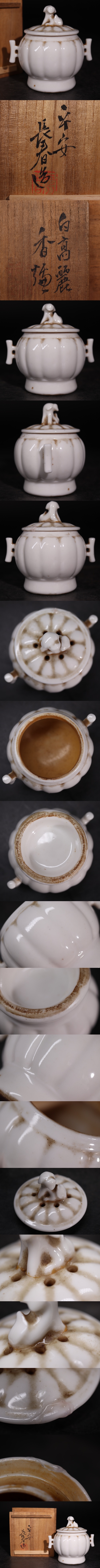 平安 長春 造 「 白高麗 香炉 」 木箱付 / 京焼 清水焼 白磁 香道具 煎茶道具 .G3704 收藏