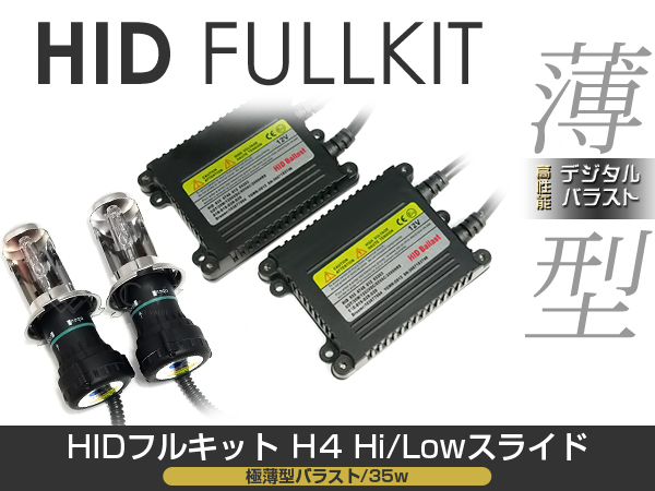 バラスト & バルブ付 HIDフルキット 薄型バラスト 35w H4 レス 桃 キセノン ヘッドライト ランプ 交換 後付け HIDキット