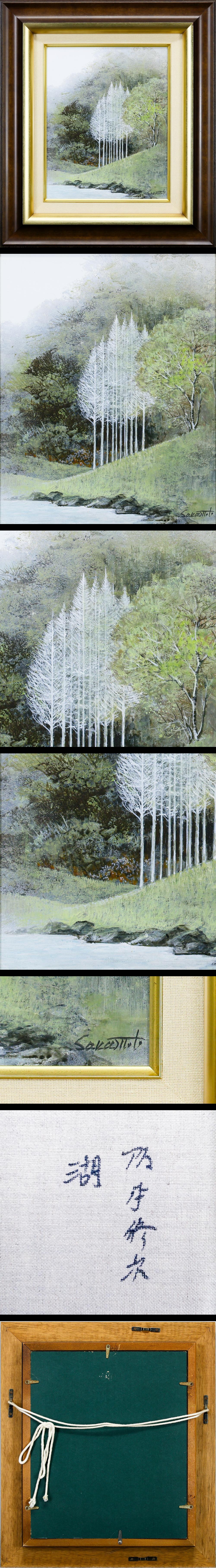【真作】【WISH】阪本修次「湖」油彩 3号 ◆湖畔に連なる白樹、静寂の風景 〇無所属 文部大臣奨励賞 松坂屋他個展 #26022150 收藏