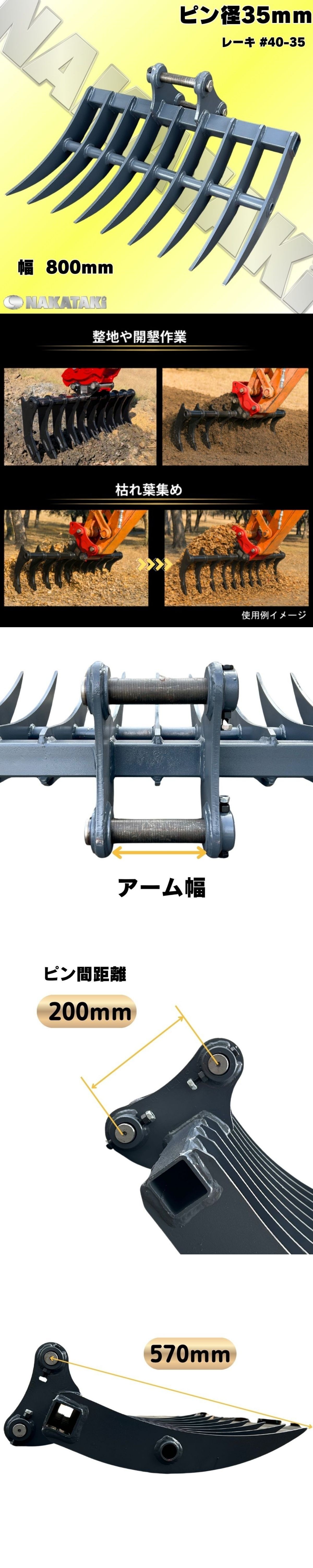 レーキ セール特価! NAKATAKI #40-35 SK20SR-5 Vio20-1 Vio20-3 Vio20-6 ZX20U-5A PC38UU-1 重機 ユンボ バックホウ Z3 BN 收藏