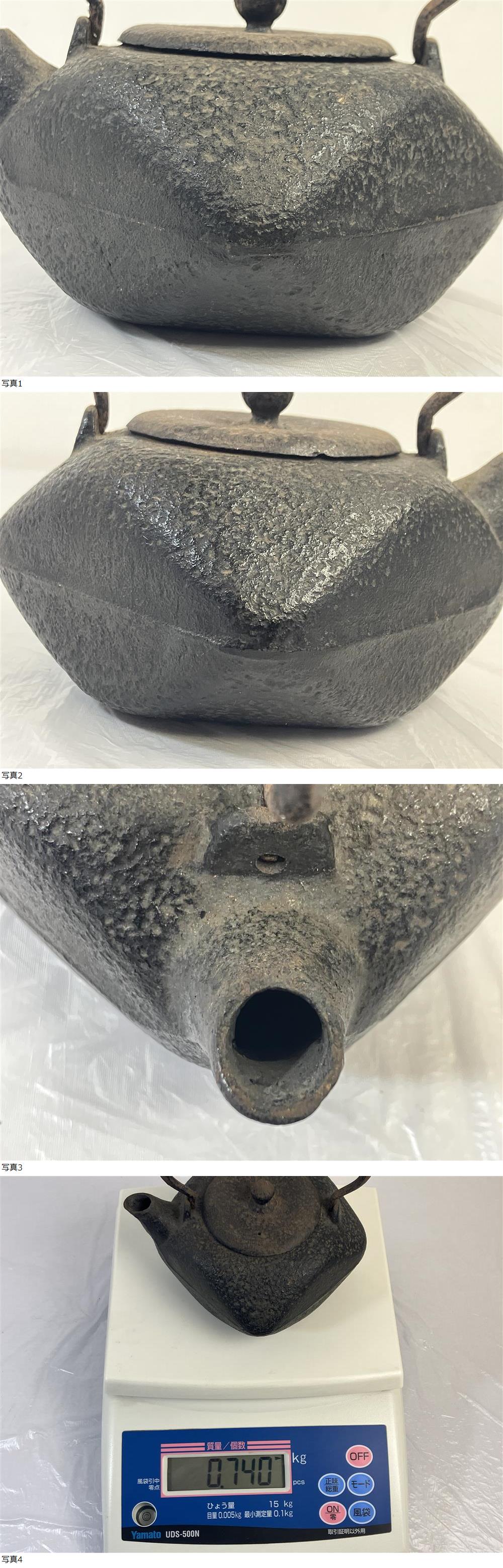 【水漏れ無確認済み】南部 鉄瓶 多角形 四方多角体型 時代物 当時物 骨董 急須 湯沸 煎茶道具 鉄器 アンティーク 現状品 收藏