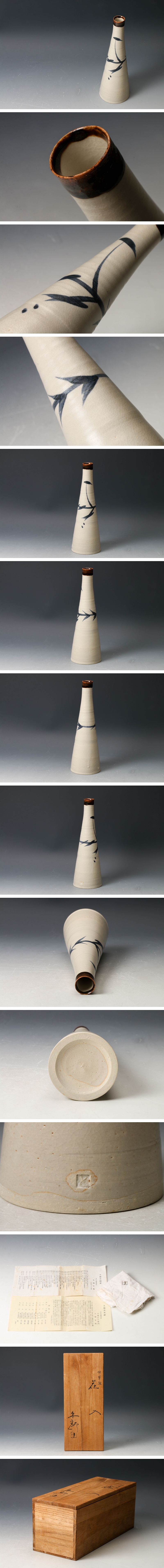 【佳香】十代 大樋長左衛門(年郎) 希少作 草花文花入 共箱 共布 栞 本物保証 收藏