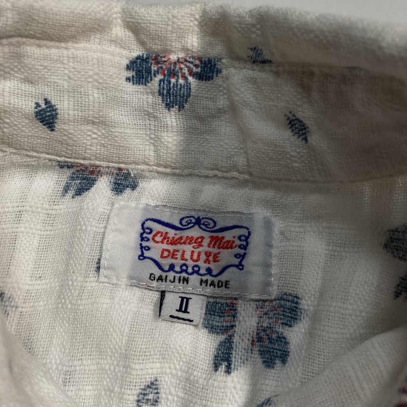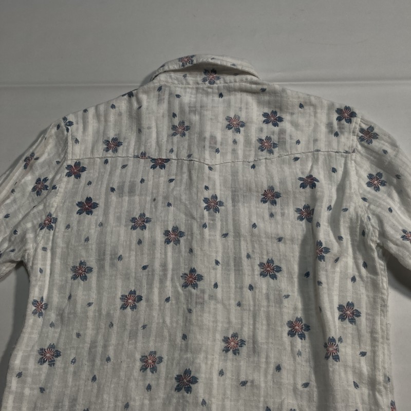 GAIJIN MADE★chiang mai DELUXE★和の優雅★和風 花柄 桜 ガーゼ生地 格子チェック 長袖ウエスタンシャツ ドビー織 白 2 M ガイジンメイド 收藏