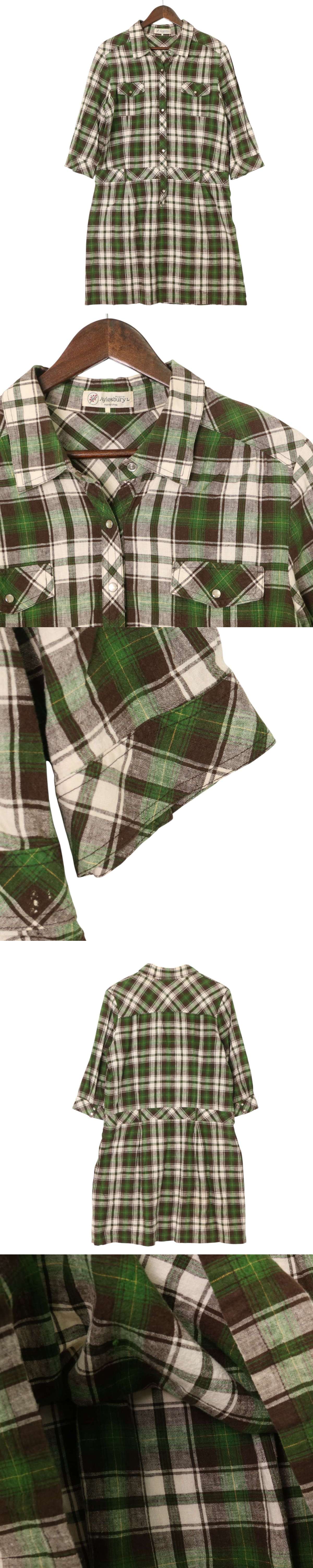 Aylesbury アリスバーリー 春夏★ 麻 チェック柄 チェック シャツ ワンピース Sz.L レディース 收藏