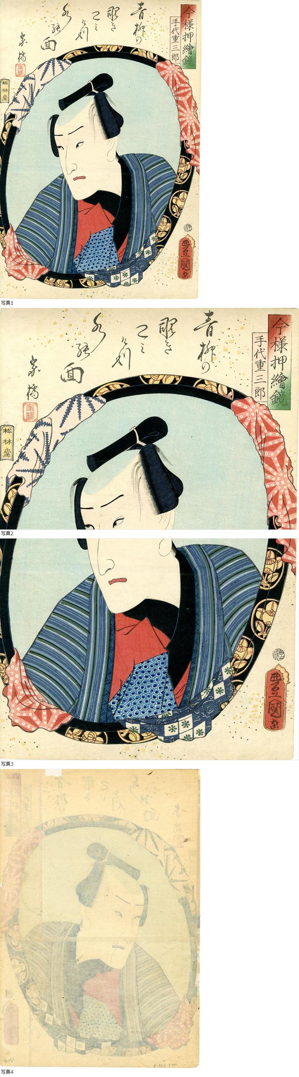 | 豊国 真作「今様押絵鏡 手代重三郎/大判錦絵1枚」 浮世絵 江戸 木版画 歌舞伎 役者 |