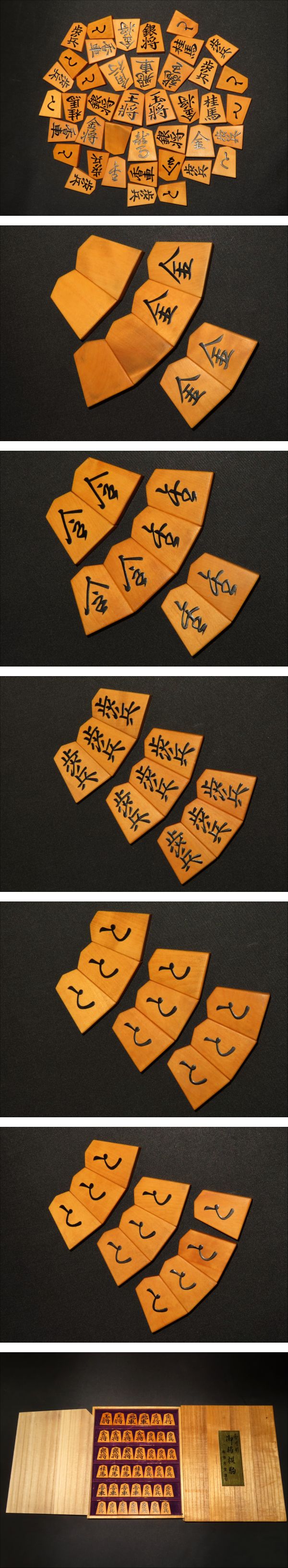 ▲香月作菱湖島黄楊柾目盛上将棋駒▲香月堂オリジナル桐平箱付