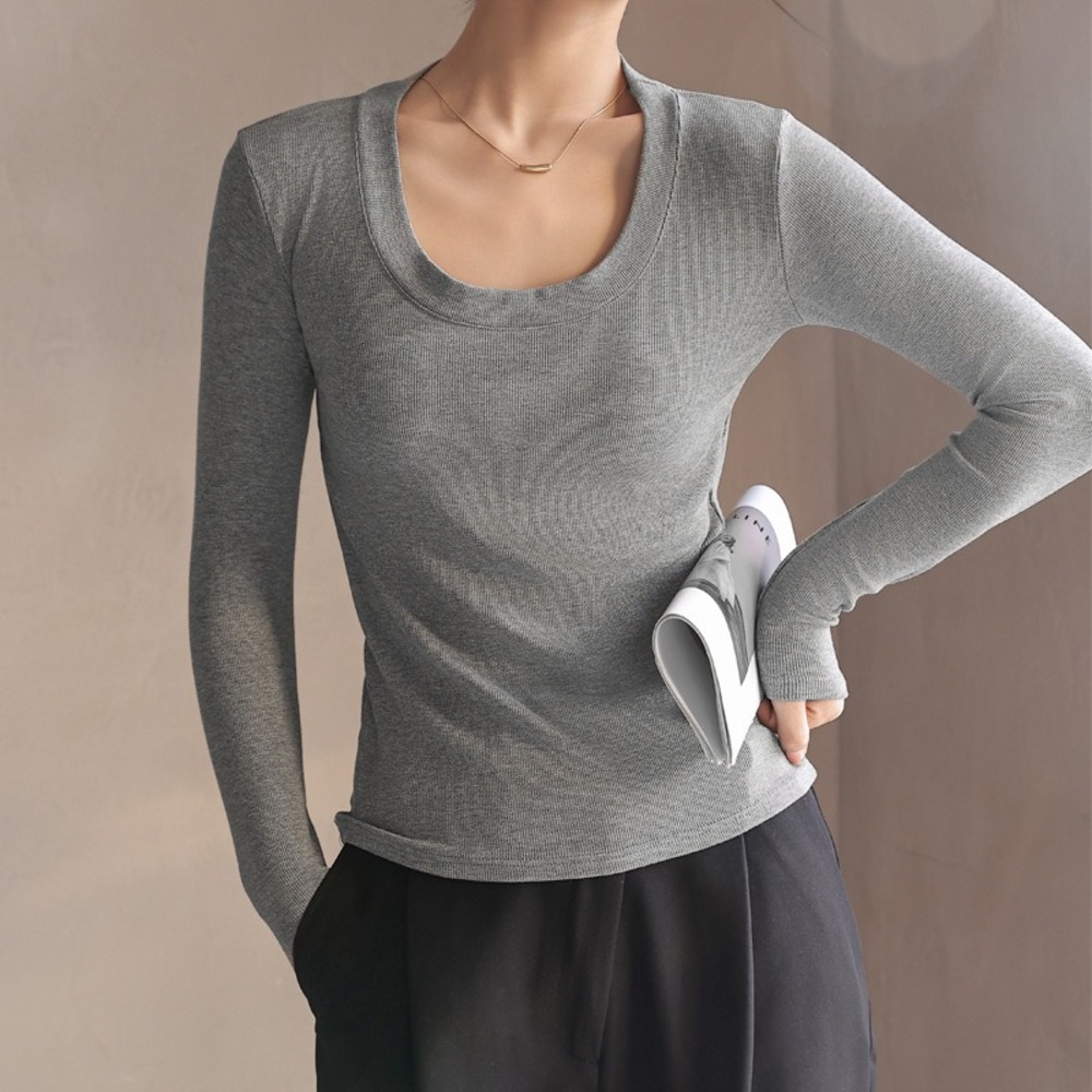 ☆ ライトグレー ☆ Lサイズ ☆ カットソー 長袖 Uネック Uネック カットソー 長袖 tシャツ ロンt レディース 長袖インナー ロングTシャツ 收藏