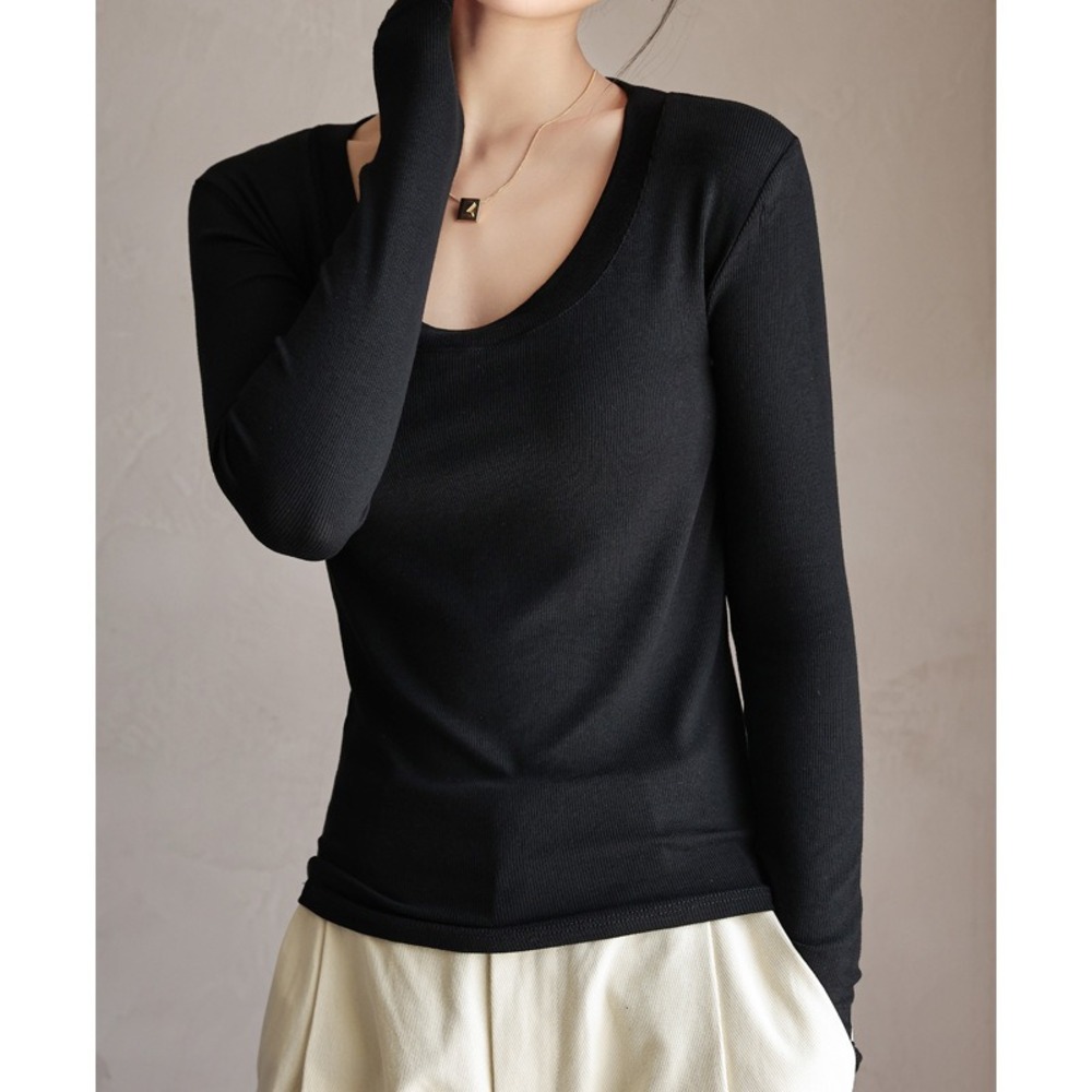 ☆ ブラック ☆ Sサイズ ☆ カットソー 長袖 Uネック Uネック カットソー 長袖 tシャツ ロンt レディース 長袖インナー ロングTシャツ 收藏
