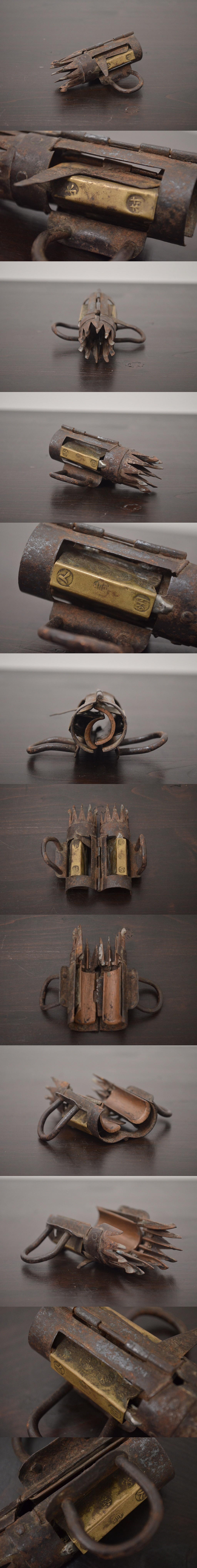 ★R-041995 明治~大正期 人信州 特許発明 鉄 真鍮 武具? 收藏