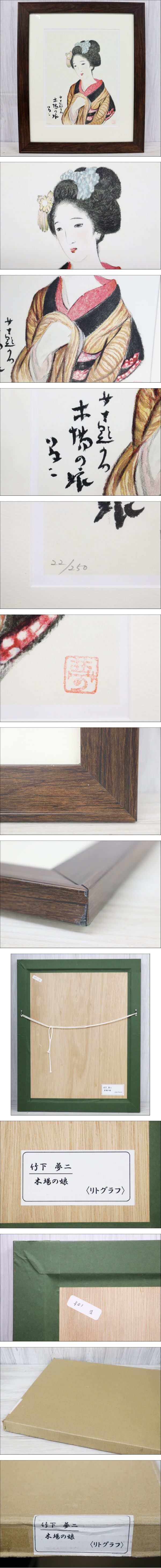 【行董】竹下夢二 リトグラフ 「木場の娘」 額装入り 額サイズ47.5×58.5cm アート コレクション版画 AT328ABC50 收藏