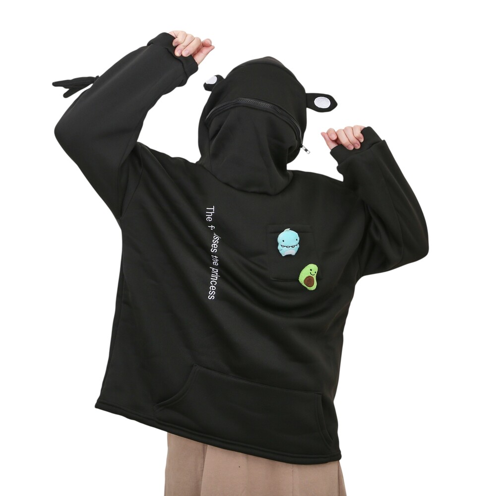 ☆ ブラック ☆ XLサイズ ☆ パーカー トップス カエル ジッパー付き パーカー レディース 長袖 おしゃれ フーディー プルオーバー 收藏