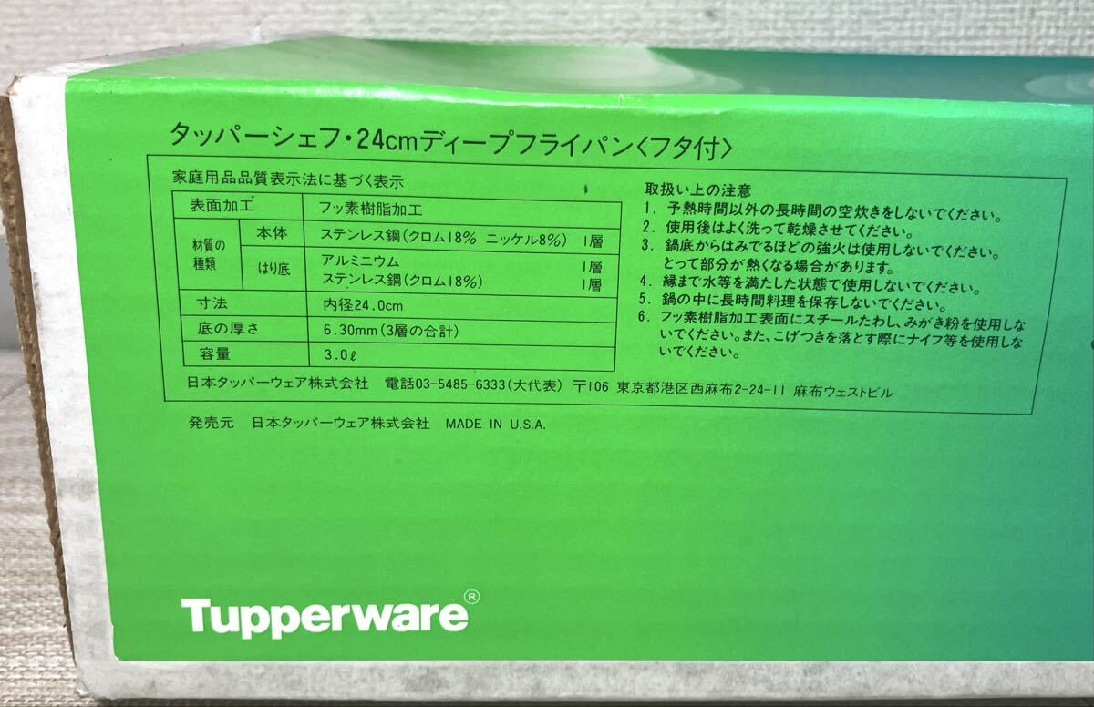 KGNY5871 未使用品 Tupperware タッパーウェア タッパーシェフ 24cm ディープフライパン〈フタ付 〉調理器具 3.0L 收藏