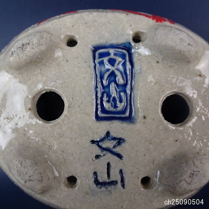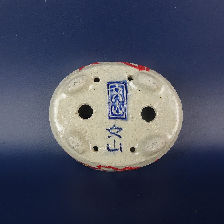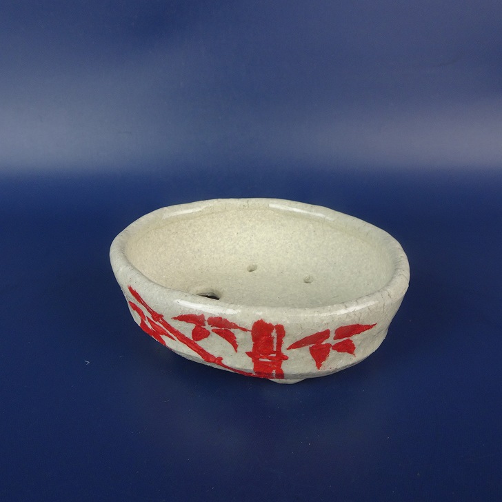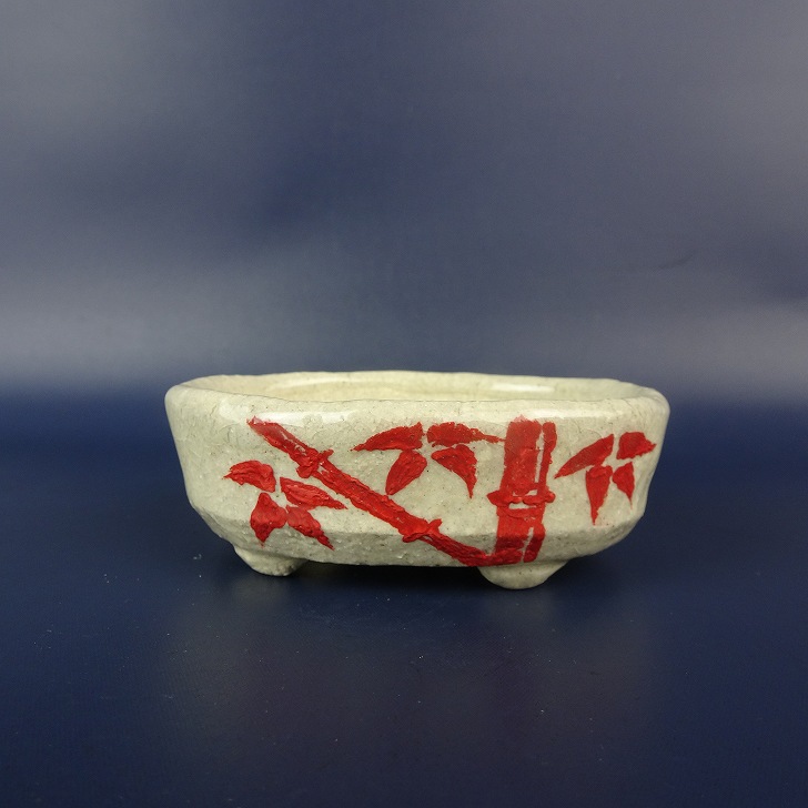 盆栽鉢 文山 越前文山 小鉢 長辺 約 8.9cm 楕円鉢 赤絵 竹 笹 花 はな ハナ 鑑賞 観賞用 現品 新品 收藏