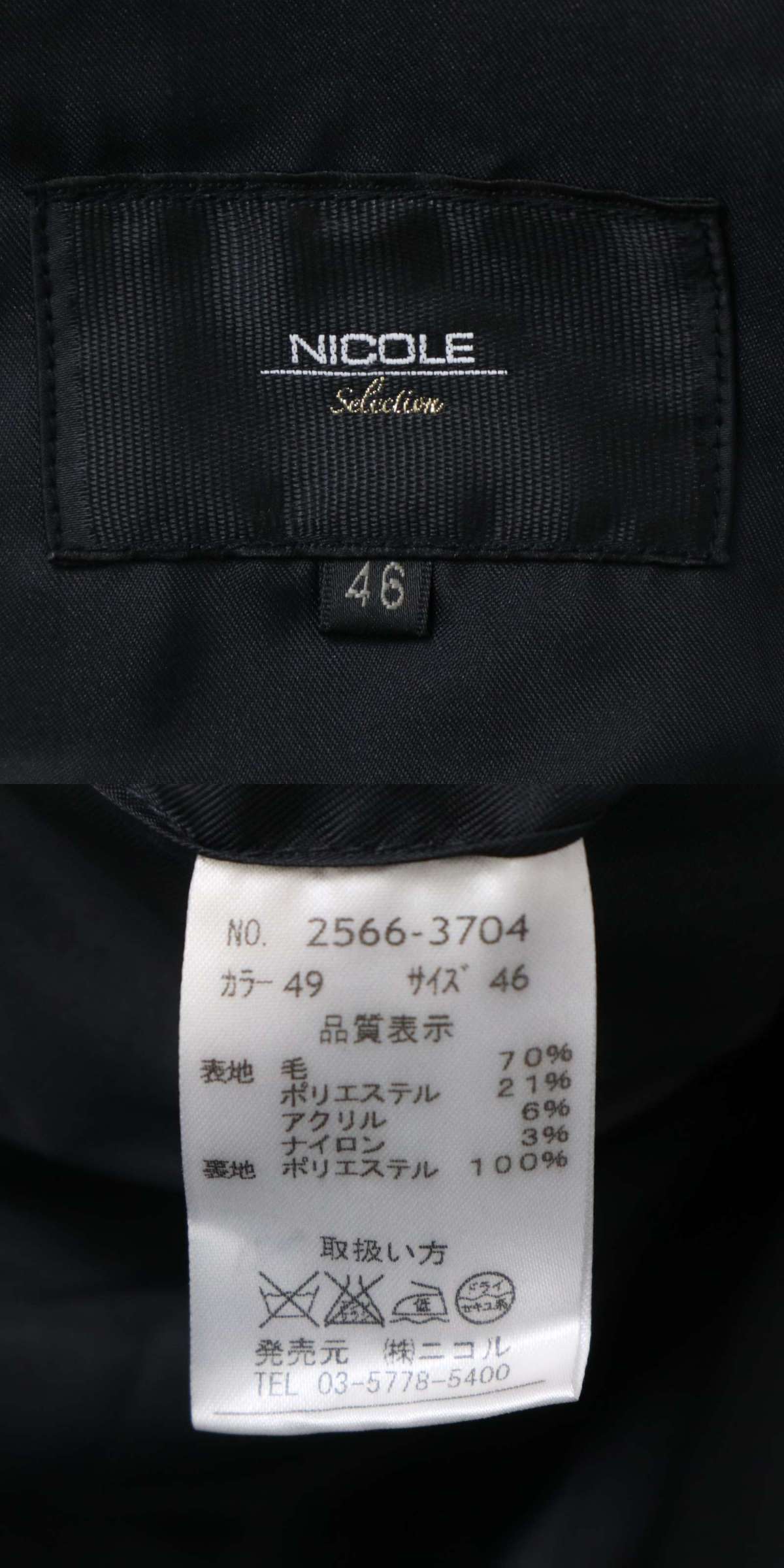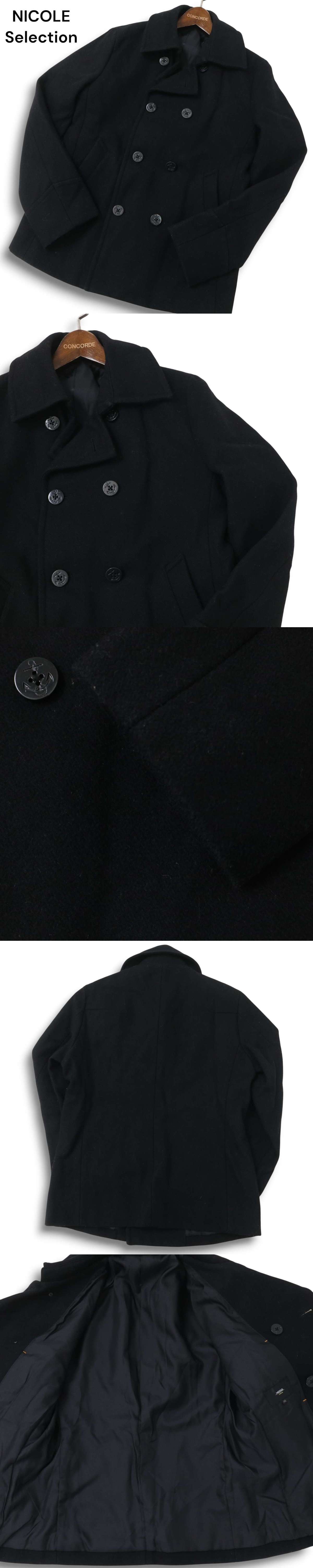 NICOLE Selection ニコル セレクション 秋冬 メルトン ウール★ Pコート Sz.46 メンズ 黒 收藏