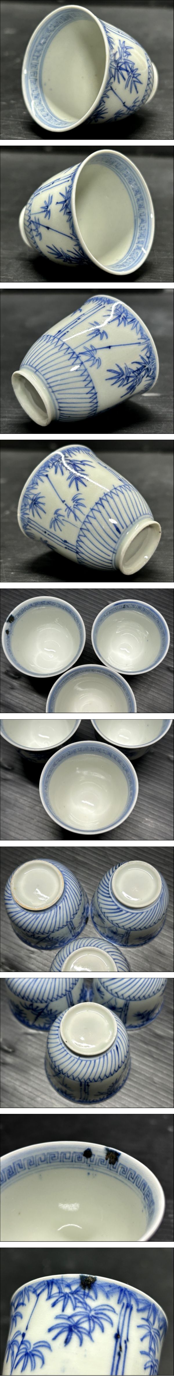 古伊万里 古染付 竹紋 蕎麦猪口 煎茶器 3客揃 酒器/酒呑/湯呑/ぐい呑/盃/日本酒/和食器/古美術/骨董/年代物/時代物 收藏