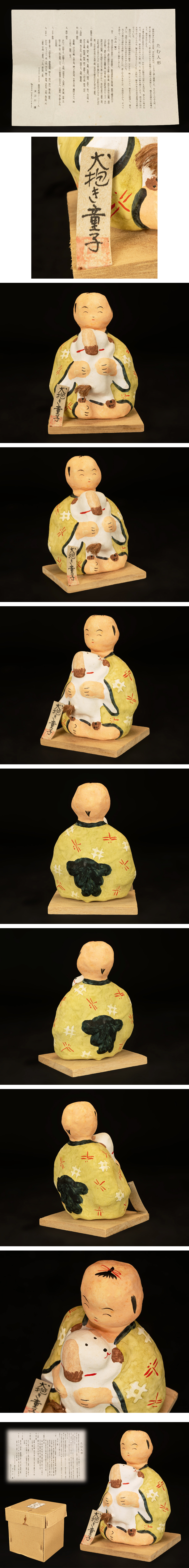 ●たむ人形 張子人形 犬抱き童子 郷土玩具 高さ12cm 共箱・栞付 太刀川進 民芸人形● 收藏