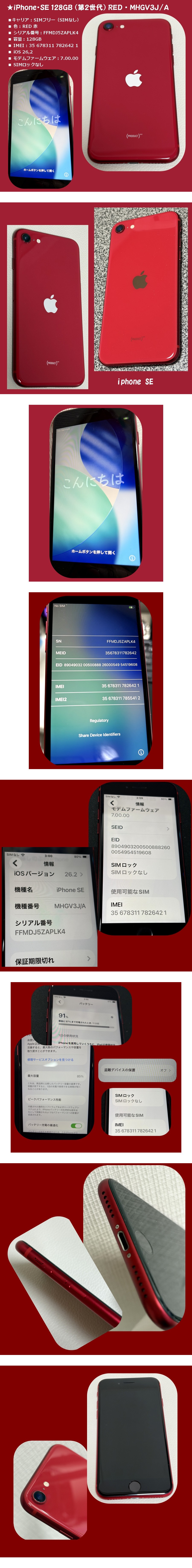 ★ iPhone SE 128GB (第2世代) RED・MHGV3J/A・ios26,2・SIMフリー 收藏