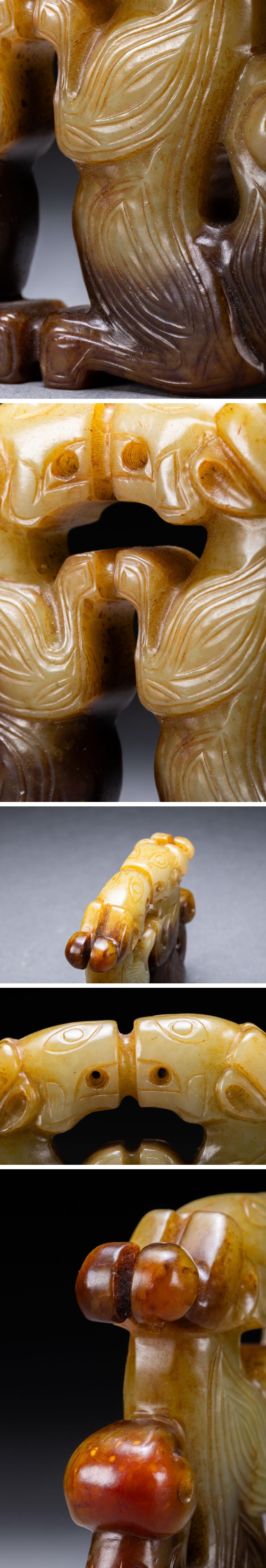【清】関西某オークション購入 中国・時代物 和田玉 古玉瑞獣紋玉牌 極細工 古置物 古擺件 中国古美術7L11-101S2