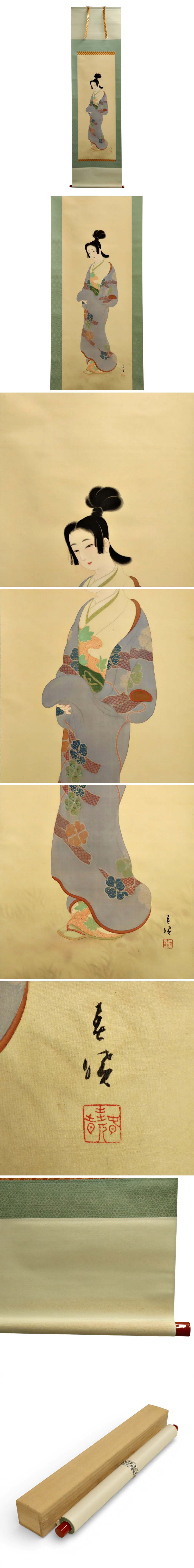 在銘 美人画 絹本 箱 掛軸 書画 骨董品 古美術品 2413wgzN 收藏