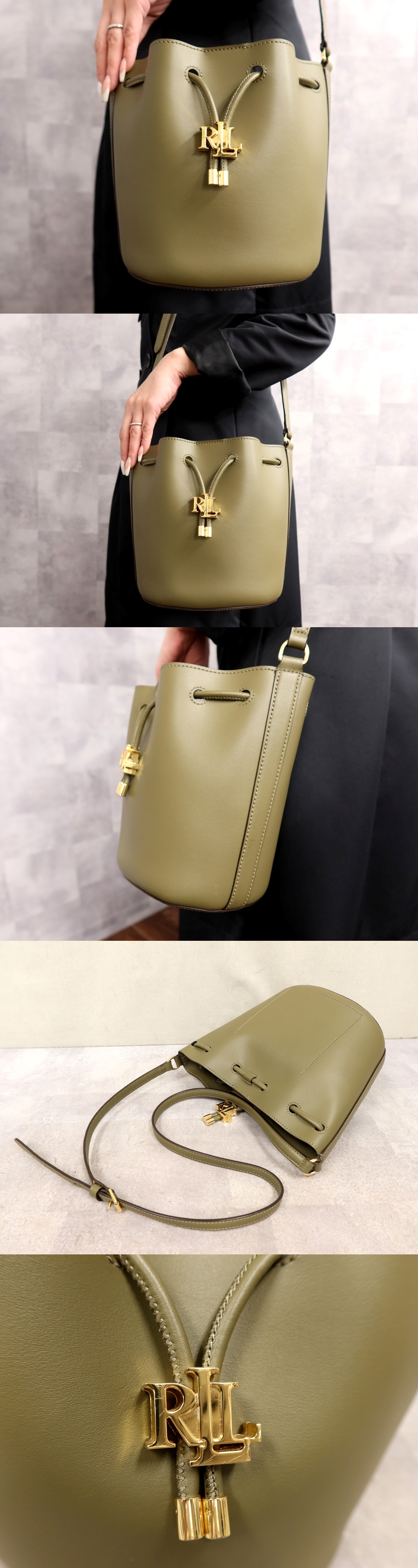 ●超美品●LAUREN RALPH LAUREN ラルフローレン●Andie●カーフ レザー 本革●巾着 ショルダー バッグ●カーキグリーン●G金具●Js65740 收藏