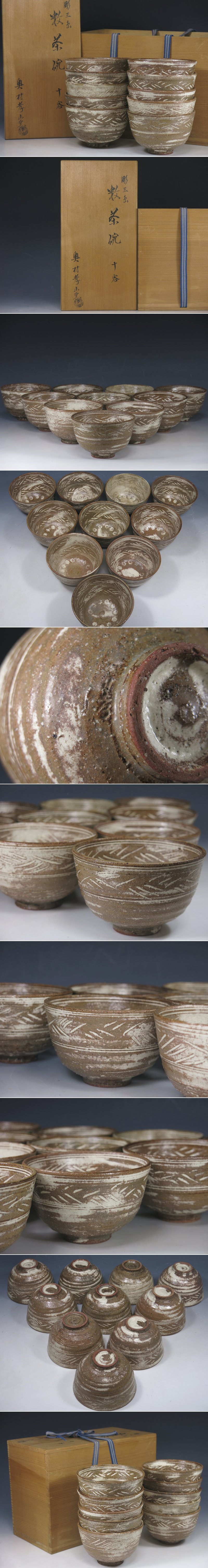 | 商品名 | 奥村孝山窯 彫三島 数茶碗 十客 共箱 茶道具 |