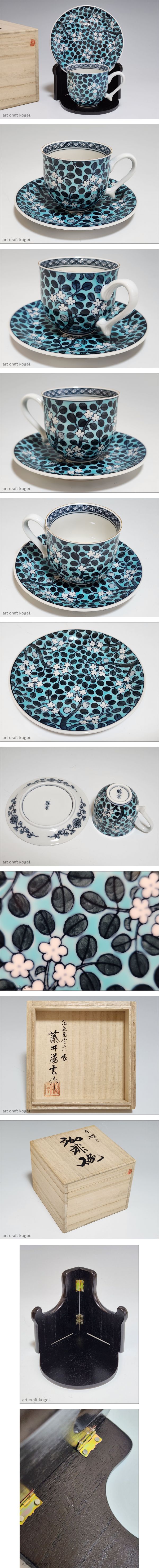 有田焼 伝統陶芸作家 藤井勝雲 手描き 珈琲碗 共箱 カップ&ソーサ― 花柄 收藏