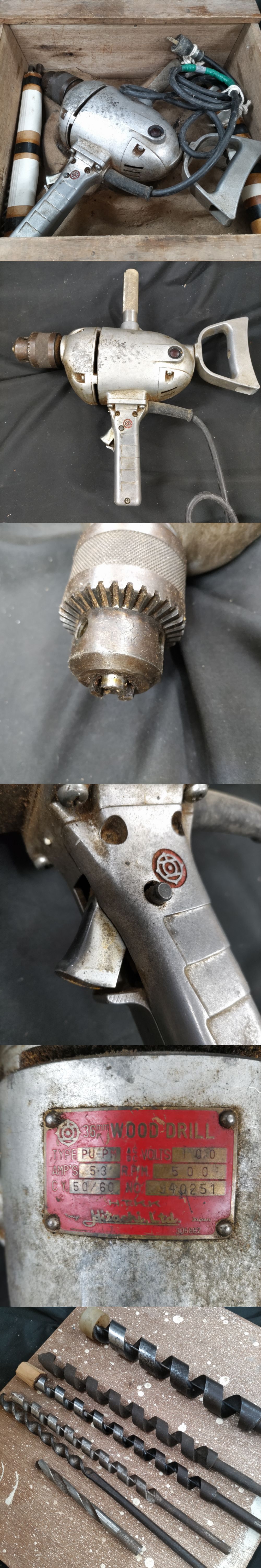 ◎日立◎HITACHI 36mm WOOD DRIL 木工電気ドリル モデル:PU-P 通電確認済 即発送 收藏