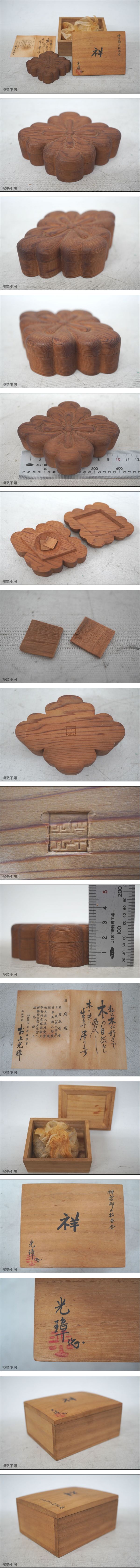 [3-132] 村上光璋 神宮御山杉香合 祥 御香 共箱 栞 木製 香道具 骨董 古美術 時代物 アンティーク Antique | |||
