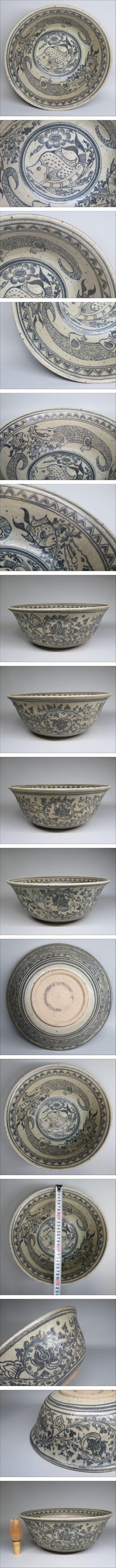 | 「都内コレクター所蔵品」ベトナム(越南)時代古陶 安南染付鰐魚花魚紋大鉢 安南焼 東南アジア古陶器 | |||
