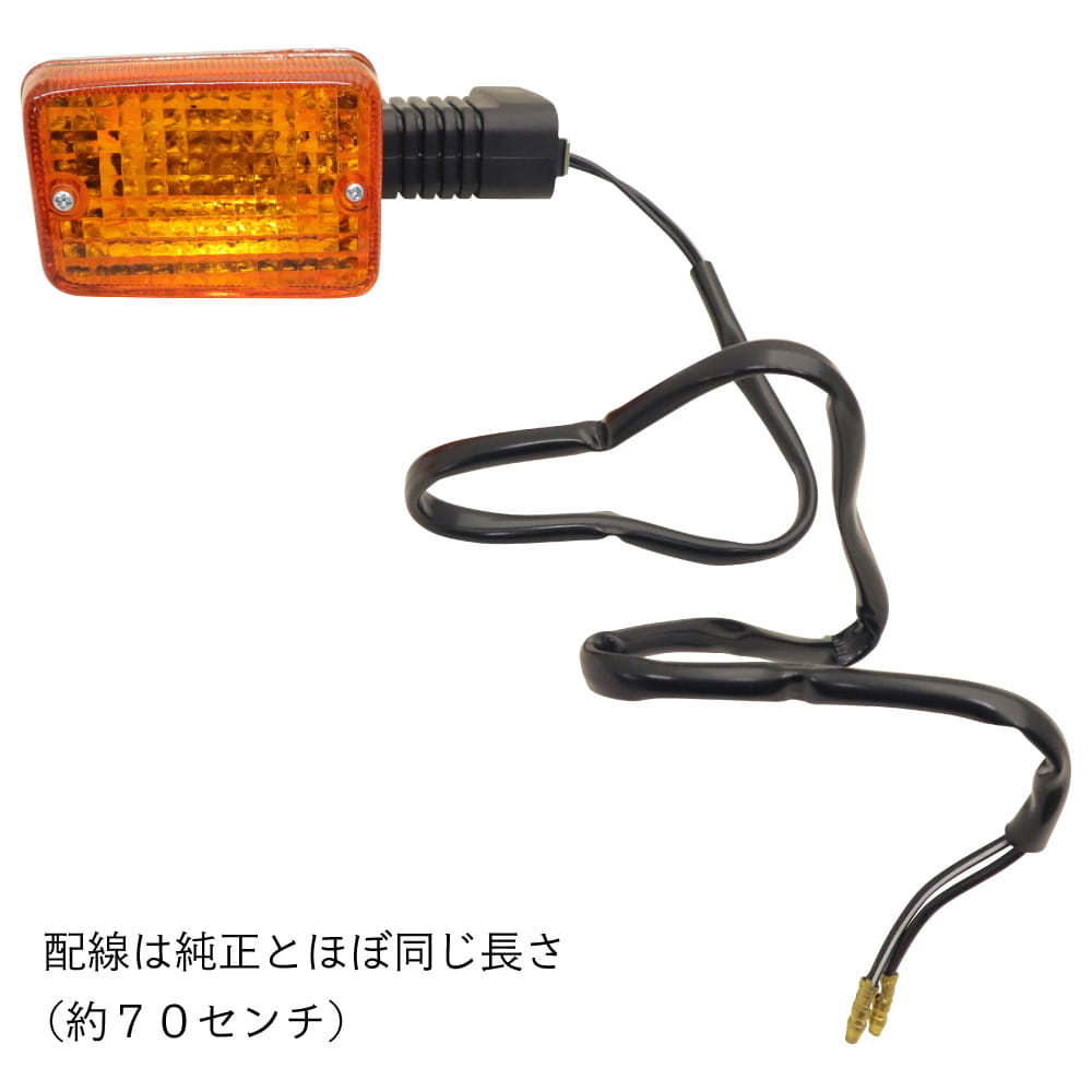 | カスタム用のフロントウインカーレンズ・純正互換タイプです。 「1個単位」での販売です。 ※配線が純正とほぼ同じ長さ(約70センチ)に伸びました。 補修用にどうぞ。 |