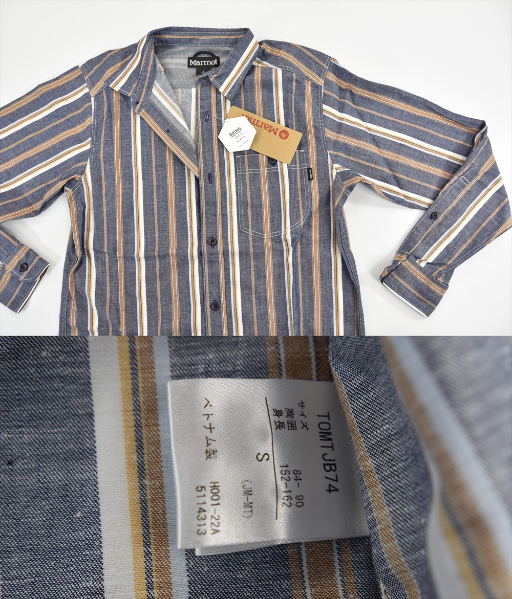送料無料4★Marmot★マーモットStripe 長袖シャツ size:S 收藏