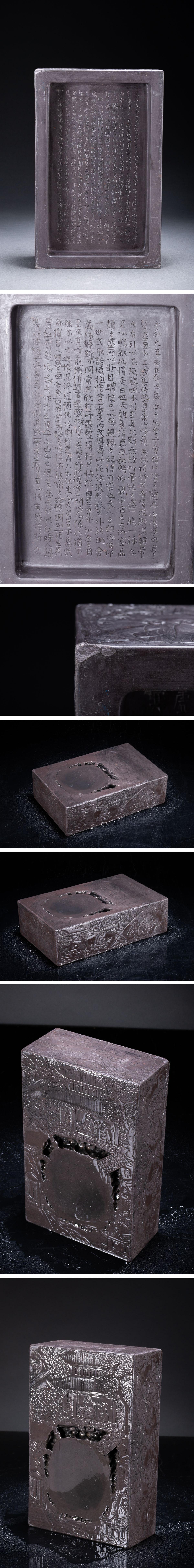 【清】関西某オークション購入 中国・時代物 古端溪 山水人物紋文房硯一方 極細工 古置物 古擺件 中国古美術7L11-50S2 收藏