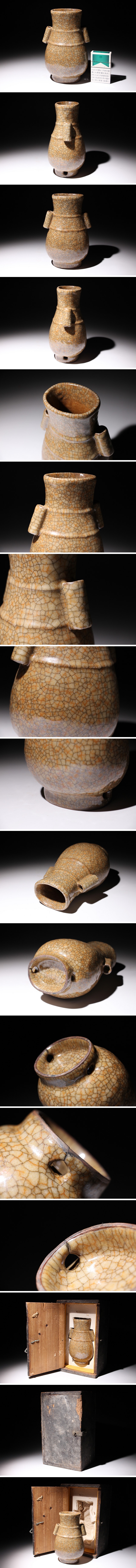 | ◇商品説明◇ | 哥窯管耳瓶の出品です。写真の木箱に収まっております。状態につきましては、スレ、キズ、ヨゴレ、窯キズ等がありましたので画像にて御確認の程宜しくお願い致します。