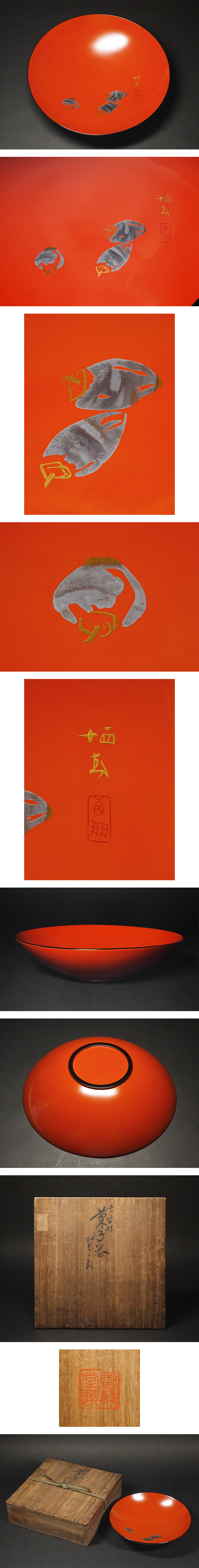 慶應◆【竹内栖鳳】下絵 朱塗茄子蒔絵 常盤形菓子器 春静堂共箱 茶道具 收藏