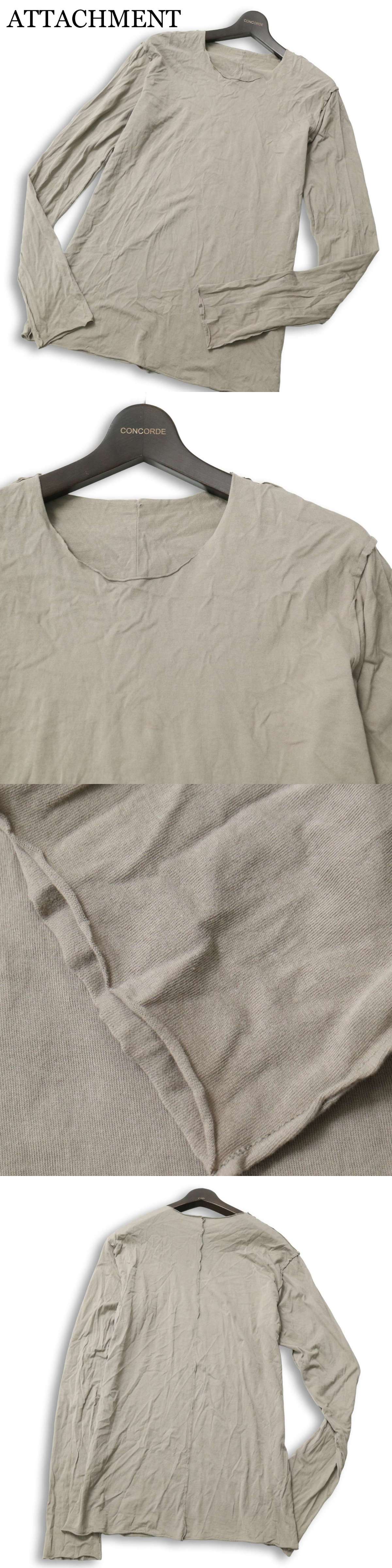 ATTACHMENT アタッチメント 通年★ 長袖 カットオフ ロンTシャツ カットソー 日本製 Sz.3 メンズ 收藏
