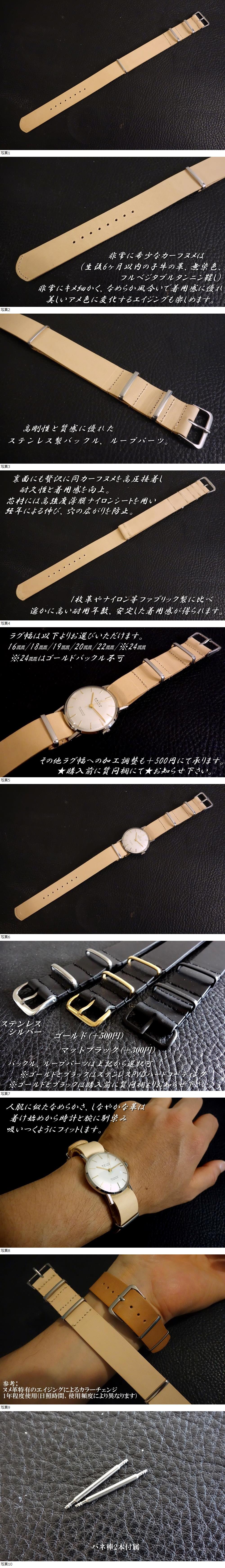 | ◆Leather NATO G10Strap◆最高品質国産本牛革カーフヌメ革 NATURAL カスタムオーダー(ラグ幅/バックルカラー) 日本製 受注製作(納期10日前後) |