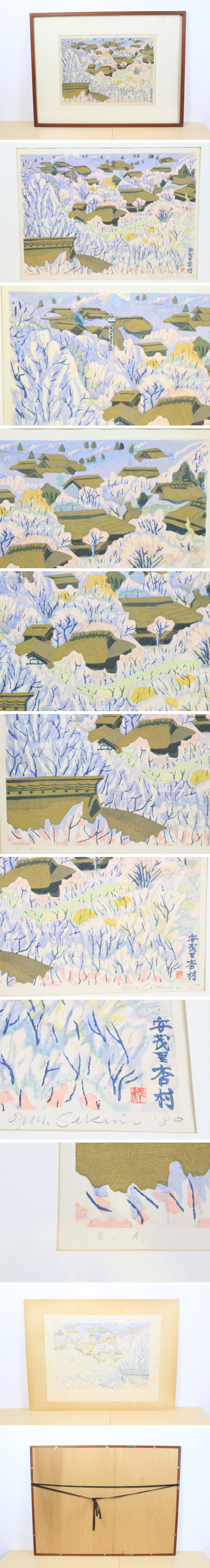 関野準一郎 「安茂里杏村」 木版画 風景画 E.A. 絵画 額装 幅:約75cm×57cm 古美術品 骨董品 8217kbz 收藏