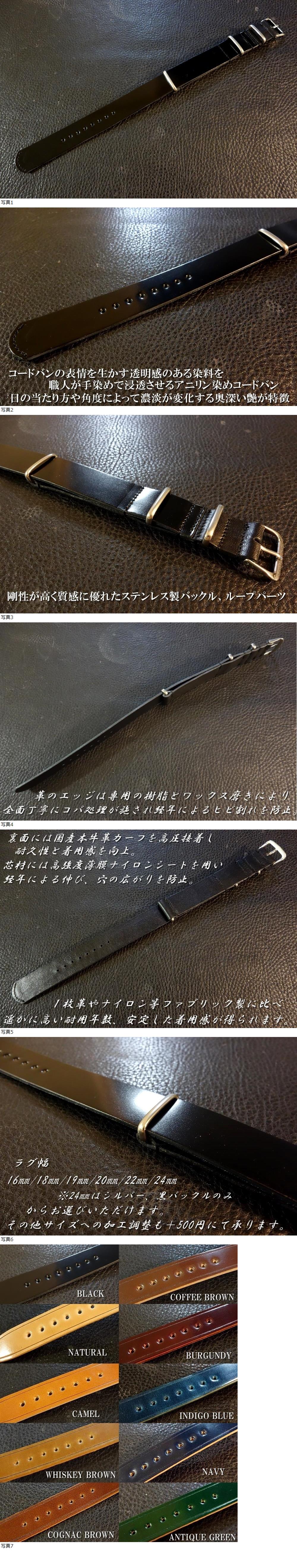| ◆コードバンNATO G10Strap◆最高品質国産アニリン染めコードバン カスタムオーダー(カラー/ラグ幅/バックルカラー) 受注製作(納期10日前後) 日本製 |