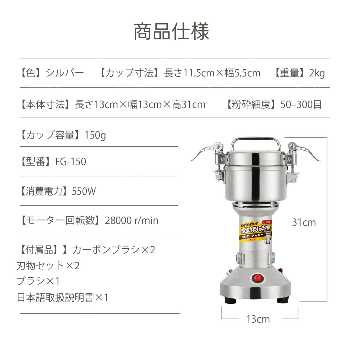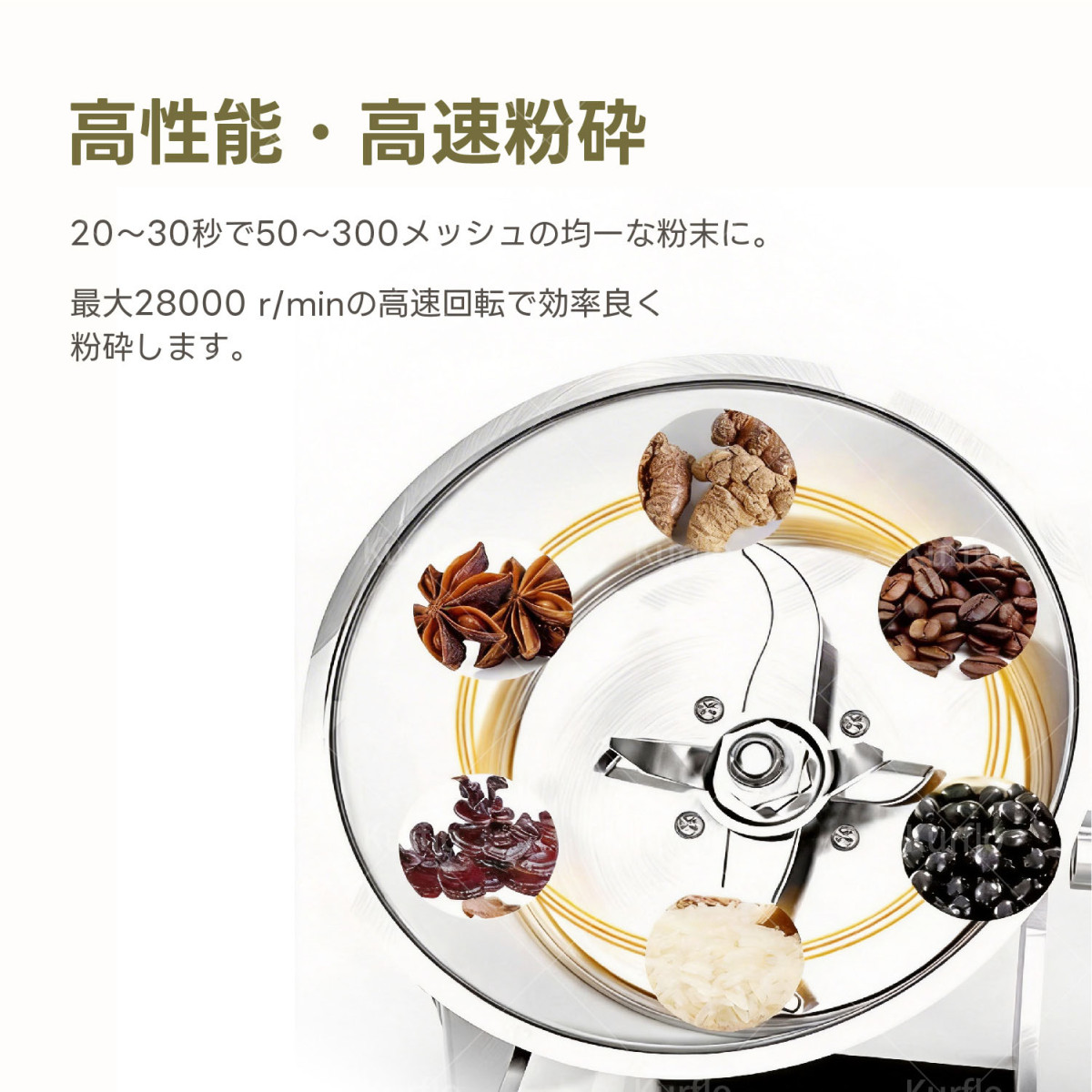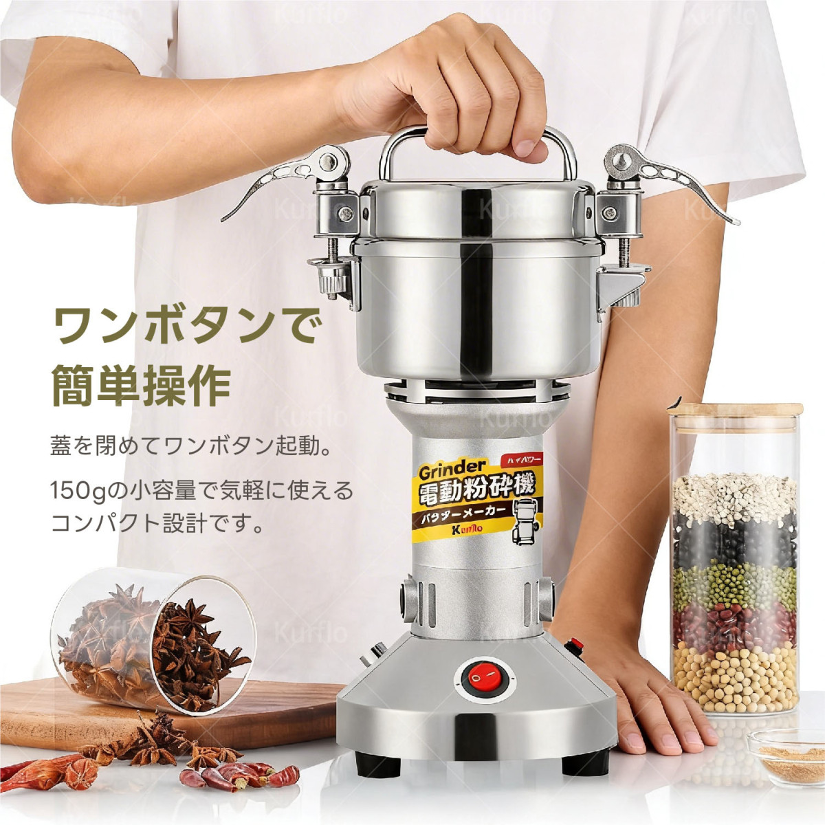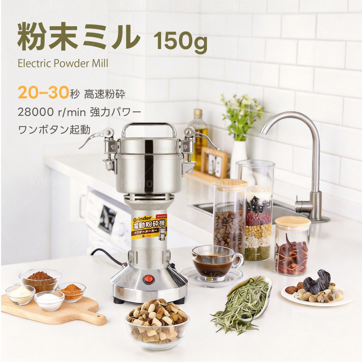 Kurflo 150g粉末ミル 粉砕機 電動ミル 電動粉砕機 製粉機 粉末ミル 電動グラインダー スパイスミル 收藏