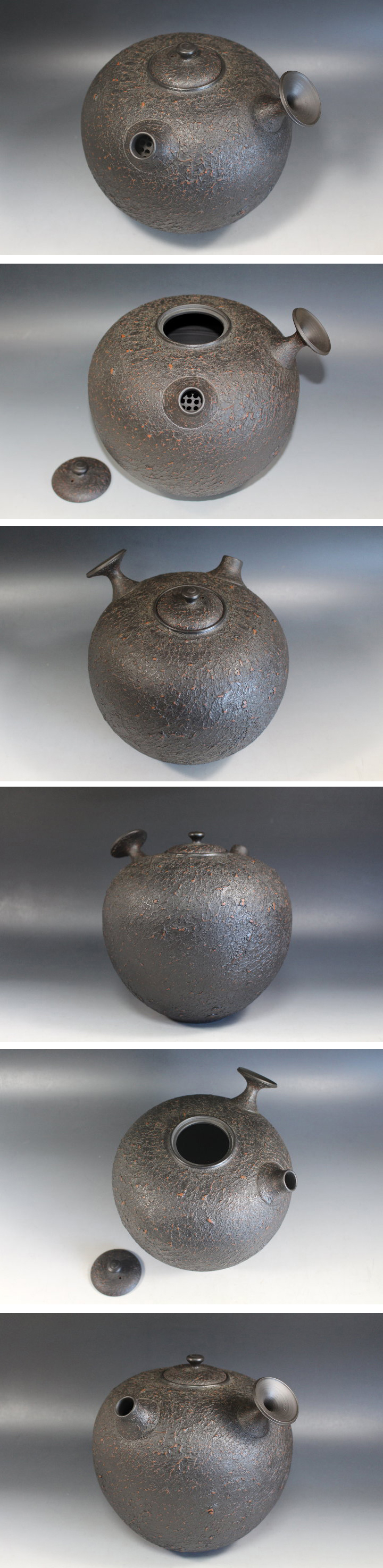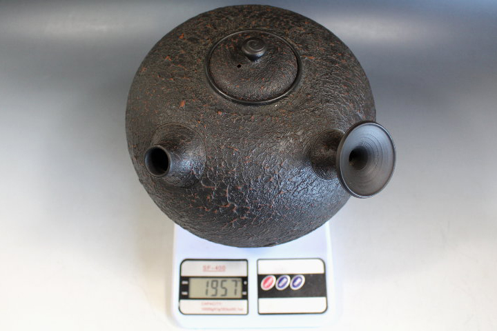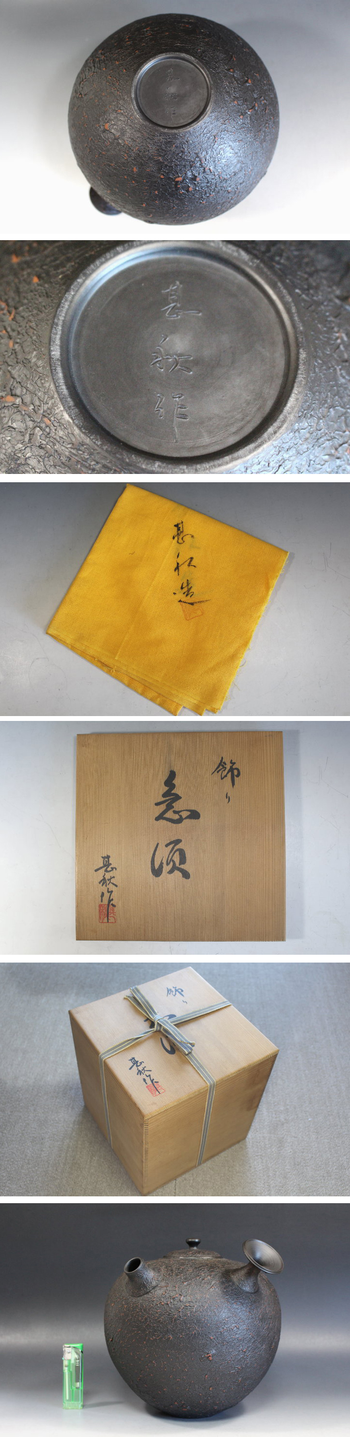 サイズ:高20.5cm(取っ手までの高さ) 甚秋作 珍しい常滑の大型飾り急須 共箱です。 大事に保存されていたのでしょうか目立つ傷みはありません。 鬱金の共布が付いています。 写真をご覧の上ご入札宜しくお願い致します。 | |