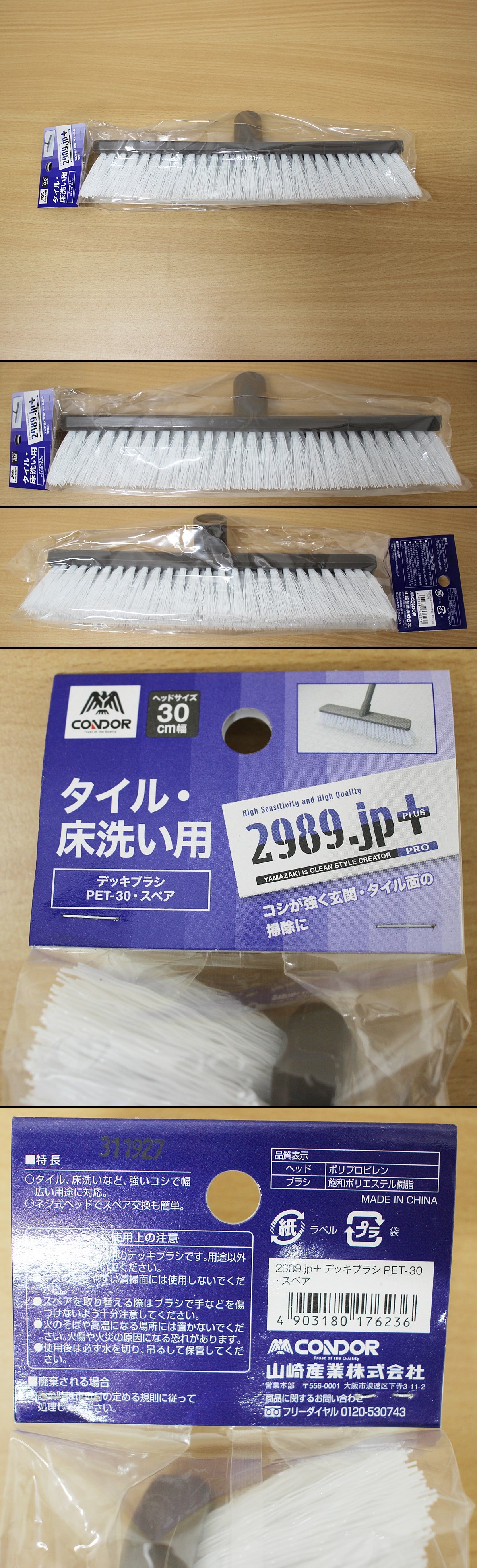 ☆山崎産業 2989.jp+ デッキブラシ PET-30 スペア タイル・床洗い用 ヘッドサイズ30cm☆60サイズ☆ 收藏