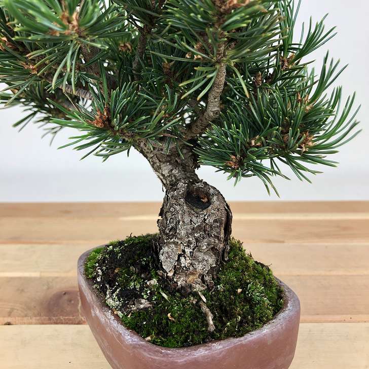 | ■植物ですので撮影時期や季節によって剪定などの手入れにより写真から変化がございます。撮影日をご確認のうえ、ご注文ください。 【五葉松盆栽】 日本固有のマツであり、平安時代から観賞用として神社仏閣などの庭園に植栽されています。銀色がかった葉が美しく成長が遅い上、木質が柔軟で枝を曲げやすいため、盆栽に使われることも多い。樹皮は暗灰色で、老木になると裂片がうろこ状に剥がれ落ちます。 |